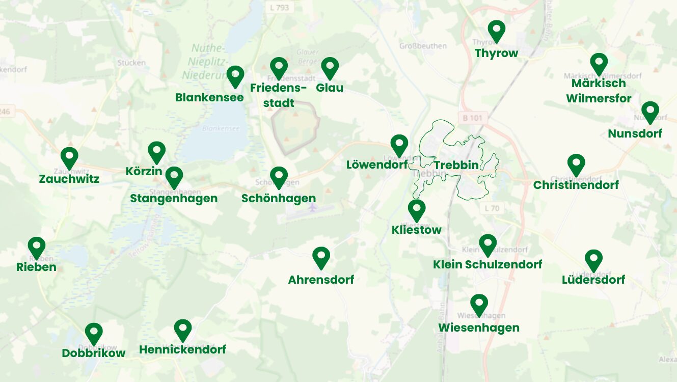Das Landhotel Heidepark mit seiner öffentlichen Kantine ist Teil der Agrargenossenschaft Trebbin eG. Sie finden uns in Klein Schulzendorf, einem Ortsteil von Trebbin im Landkreis Teltow-Fläming.